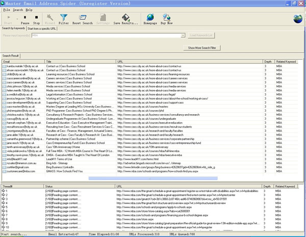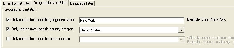 Has advanced filter, can search email by specified language, country, geographic area, area code, domain name